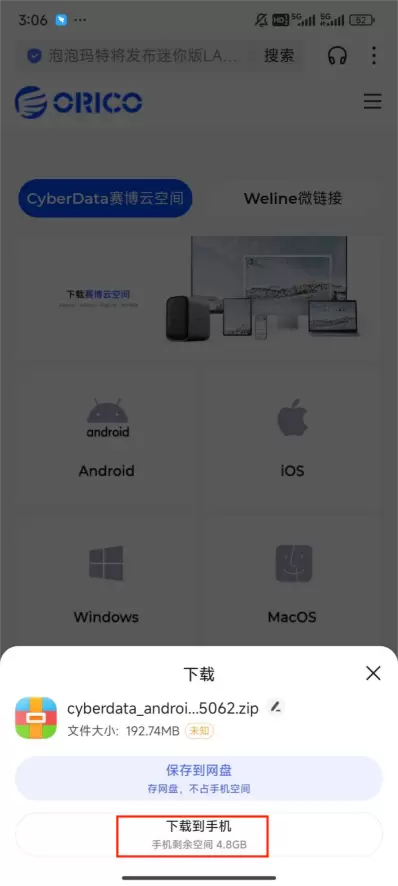 部分客户反馈使用安卓手机下载赛博云APP是.zip格式,建议复制下载地址到手机自带的浏览器下载,一般是不会出现这样的情况。