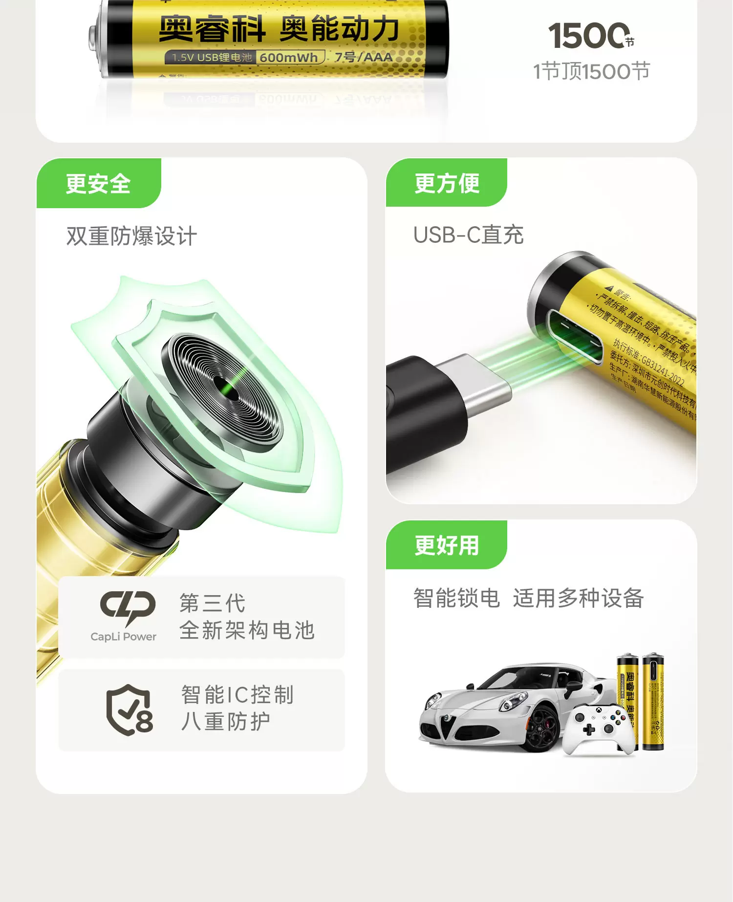 节能环保,循环可充锂电池