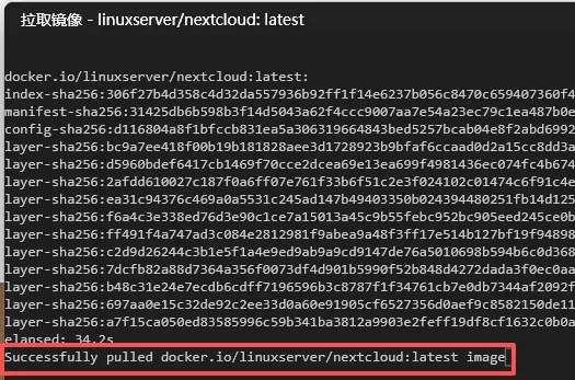 完成后会在最后一行显示“successfullypulled...”,再点击开始按钮启动容器