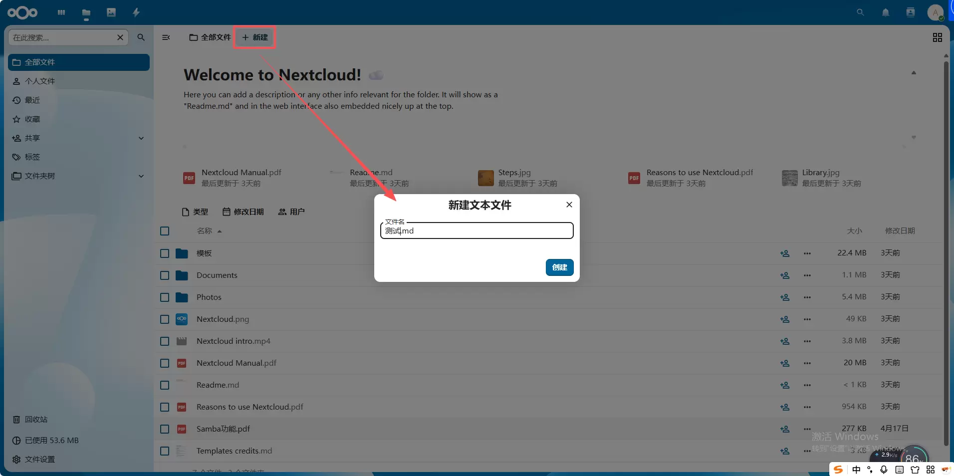 点击新建文本文件,需要先给文件命名