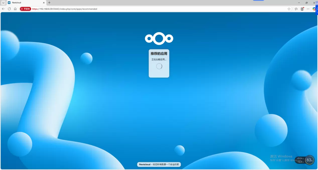 2、点击“正在运行”找到拉取的nextcloud镜像,点击“打开nextcloud”进入web界面