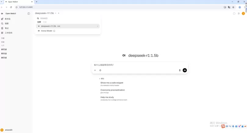 7、模型下载完成后,选中模型,即可在中部对话框进行对话。