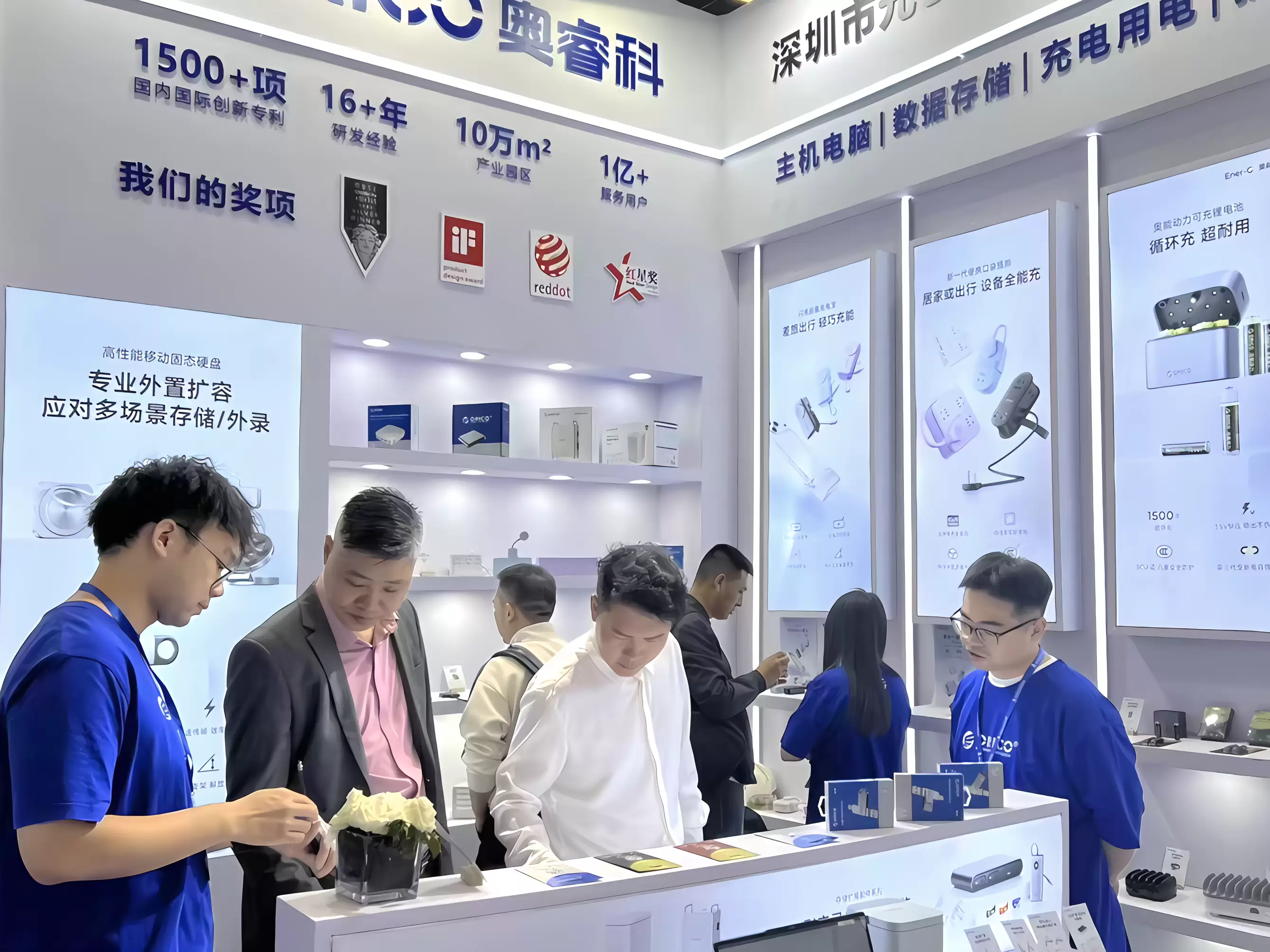 此次展会,奥睿科划分了“移动存储区”与“用电美学区”两大展示区。